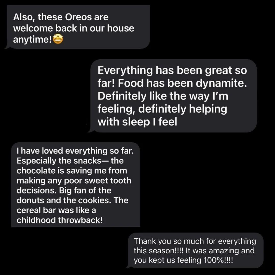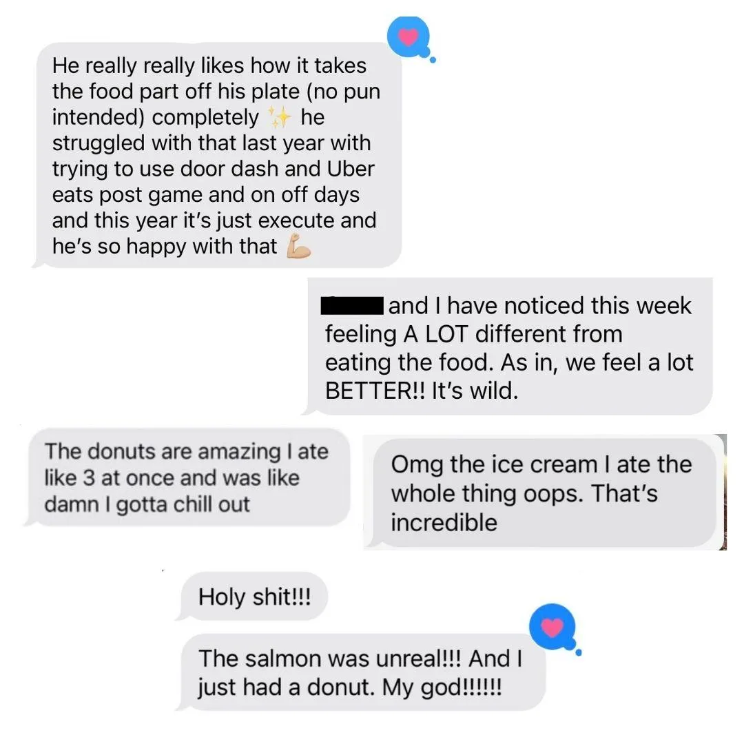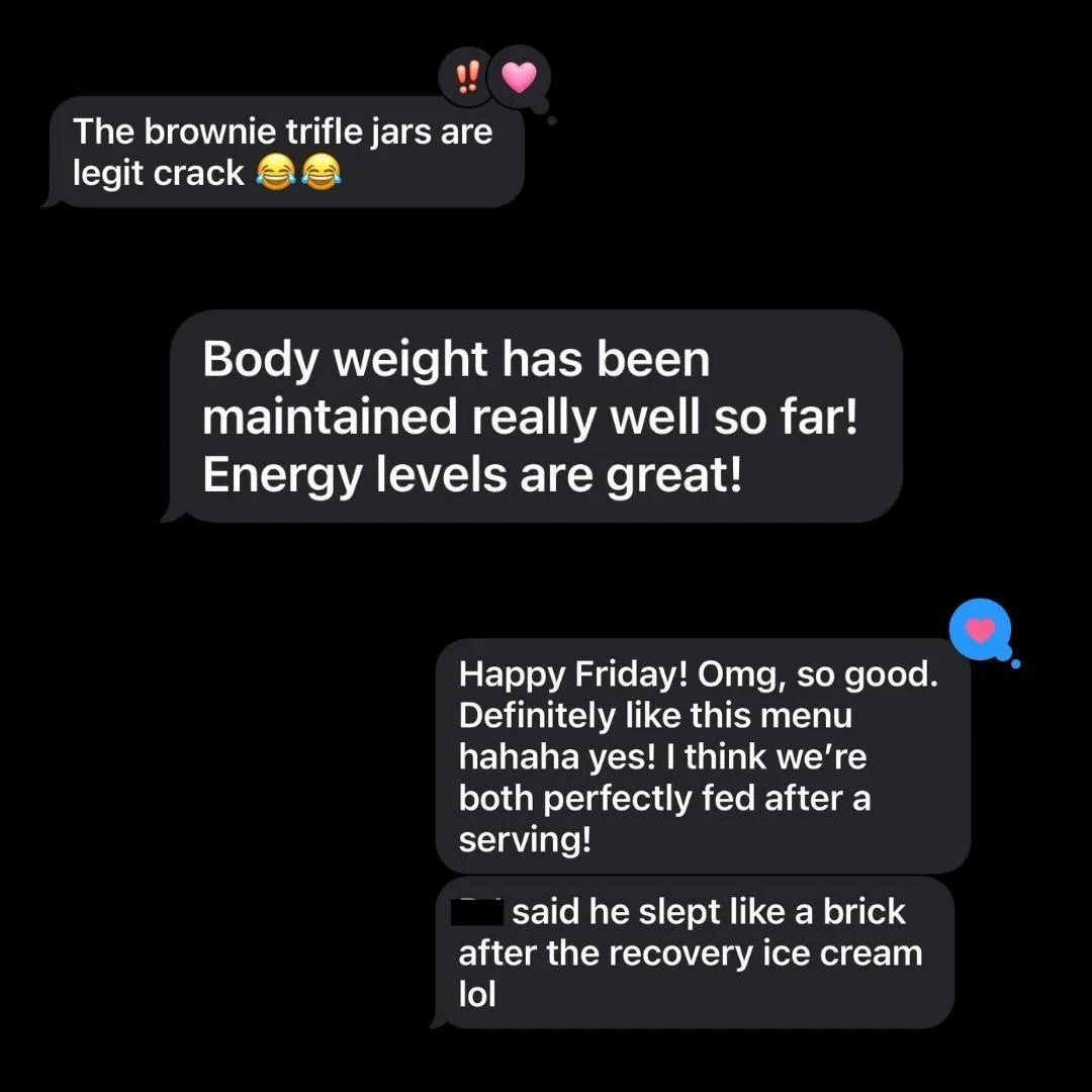 Meals & snacks are enhanced with food-grade & NSF Certified for Sport supplement-grade performance/recovery ingredients (ie: functional mushrooms, nootropics, creatine, grass-fed beef protein powder, etc.)