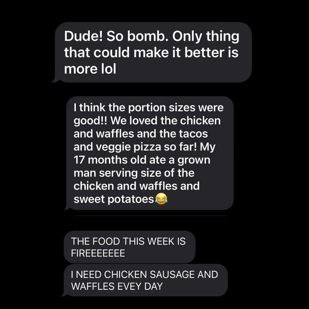 Healthy performance-focused meals in standard portions designed for actors, entrepreneurs, founders, executives and their families.